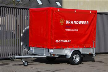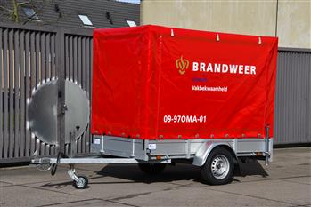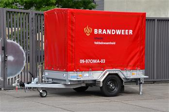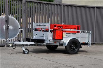 Aanhanger met extra oefenmaterialen t.b.v. grootschalige oefeningen en opleiden. |